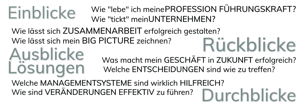 Unser Slogan „slow down & lead forward” steht für unsere Überzeugung, dass ernsthaft gewollte bzw. geforderte und nachhaltige Veränderungen ein qualifiziertes Innehalten, kollektive Reflexion, kritische Selbstsicht und diagnostische Ursachenforschung erfordern, bevor die wirklich relevanten Themen und deren Bearbeitung zu einer Performancesteigerung und somit zum Erfolg führen!